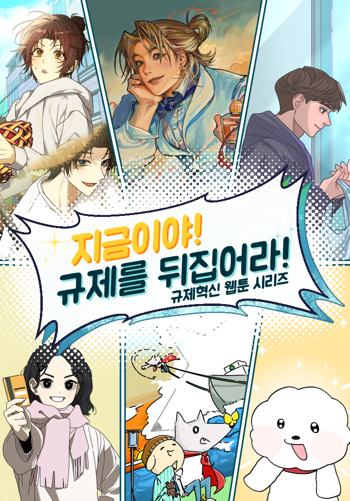 우리가 살고 있는 세상이 나아지려면? 지금 ‘규제혁신’이 나설 차례! 너무 이쁜 장하리, 백혈병을 판정받은 꼬마 리트리버 소년, 귀여운 반려견 아띠 등 규제혁신으로 달라진 삶을 지금 바로 만나보세요. 우리나라의 규제들이 어렵고 생소했던 모두에게! 규제혁신을 웹툰 시리즈로 손쉽게 만날 수 있다니 럭키비키잖아. ♡